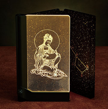 於光板呈現奚淞筆墨白描觀音閱讀《心經》的樣貌,也象徵「閱讀自己的內心」,以此祝福陪伴你我探尋生命的智慧。