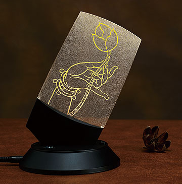 (斜立單葉桌燈) 四款奚淞的植物白描,輕觸燈座表面即可調整四種不同亮度,此燈座可裝入充電電池,透過電源充電,即可隨