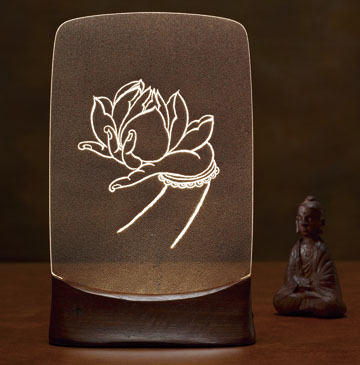 以雷射雕刻將奚淞的筆墨白描再現為一份明淨的力量。〔解縛〕以「說法印」佛手,象徵以智慧解開心結的手勢,為解開生活大小煩惱祝福。秀麗的〔護花〕菩薩手,展現慈悲護持眾生心靈的意象。而【靜】之六,菩薩手將瓶中〔甘露〕倒出,順著水流,從眼入心,淨化人們煩躁不安的思緒。